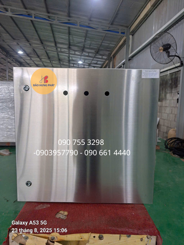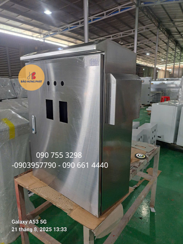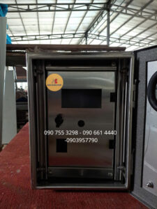 Vỏ tủ điện được gia công từ tấm inox 304 dày 1.0mm – 2.0mm, đảm bảo khả năng chịu va đập, bảo vệ thiết bị điện bên trong an toàn tuyệt đối.